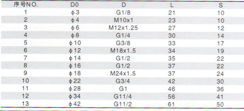 卡套接頭的工作原理是將管插入卡套內(nèi),利用卡套螺母鎖緊,抵觸卡套,切入管子而密封。它與管連接時(shí)不需焊接,有利于防火、防爆和高空作業(yè),并能消Chu焊接不慎帶來的弊端。因而它是煉油、化工、石油、天然氣、食品、制藥、儀器儀表等系統(tǒng)自控裝置管路中的一種較為先Jin的連接件。適用于油、氣、水等管路連接。制造標(biāo)準(zhǔn):GB3733.1~3765-83公稱壓力:25MPa--40MPa適用溫度:≤450℃適用介質(zhì):油、水、氣等非腐蝕性或有腐蝕性介質(zhì)制造材料:304 316 20#配管:Φ4~Φ42的普通級(jí)精度鋼管錐管螺紋:ZGGNPT等卡套接頭概述: 卡套式管接頭由三部分組成:接頭體、卡套、螺母。當(dāng)卡套和螺母套在鋼管上插入接頭體后,旋緊螺母時(shí),卡套前端外側(cè)與接頭體錐面貼合,內(nèi)刃均勻地咬入鋼管,形成有Xiao密封。
